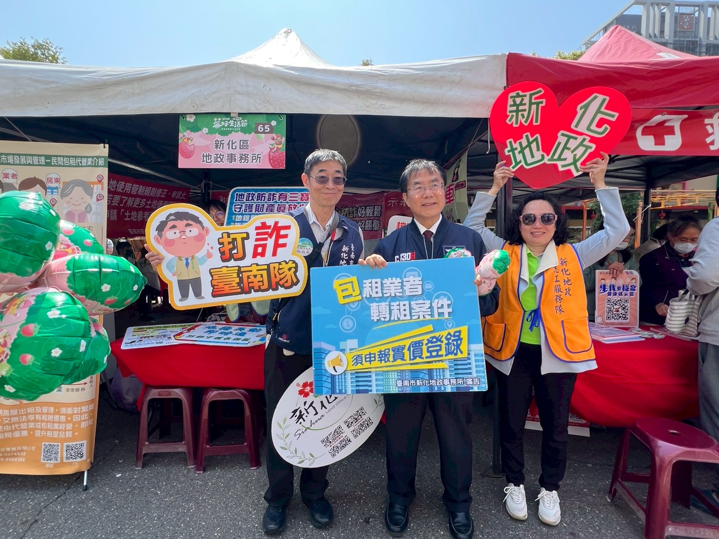 地政局長陳淑美表示,善化區近年受南科發展帶動,人口持續成長,居住與租屋需求熱絡。地政局及所轄各地政事務所除持續強化不動產交易安全與租賃市場資訊透明外,也透過草莓節等各具地方特色的活動結合宣導,將租屋安全觀念與地政防詐措施帶入民眾日常生活。另外,也提醒市民朋友在尋找租屋或處理不動產交易時,多一分查證、多一分警覺,善用政府提供的服務與資訊,共同守護自身財產安全。