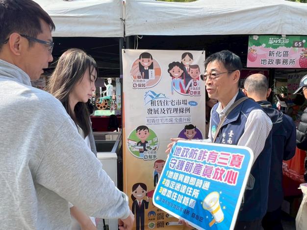 地政局長陳淑美表示,善化區近年受南科發展帶動,人口持續成長,居住與租屋需求熱絡。地政局及所轄各地政事務所除持續強化不動產交易安全與租賃市場資訊透明外,也透過草莓節等各具地方特色的活動結合宣導,將租屋安全觀念與地政防詐措施帶入民眾日常生活。另外,也提醒市民朋友在尋找租屋或處理不動產交易時,多一分查證、多一分警覺,善用政府提供的服務與資訊,共同守護自身財產安全。